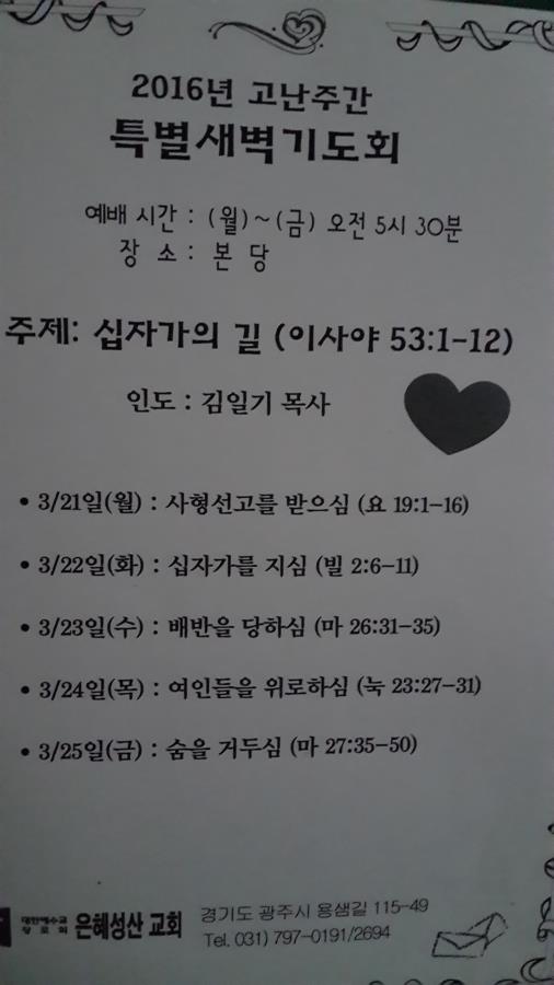 3월 고난주간을 맞아 특별새벽기도회를 열었습니다.