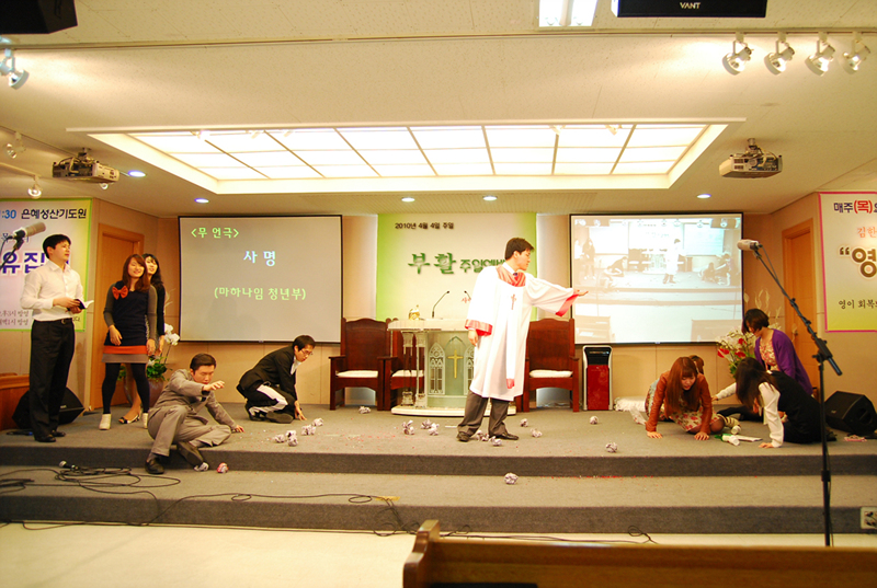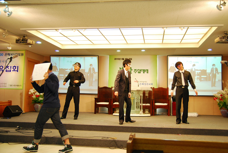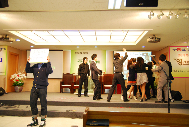 청년부.... 점차 연기력이 뛰어난데요... 조만간 진짜 연극한편 올리는게 아닐지..... 담에 뮤지컬 한편 합시다. 장년부도 끼워서.....